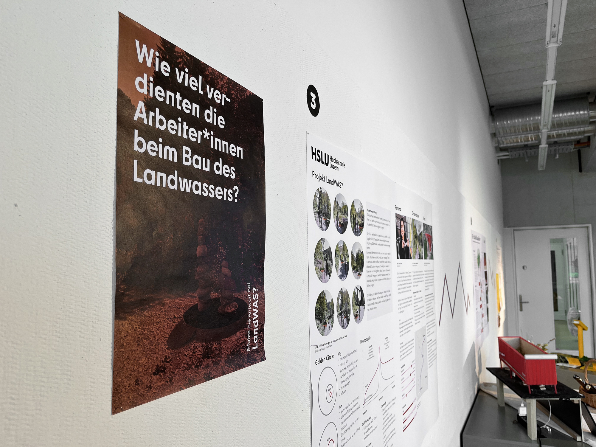 Die Albulalinie und ihr Wahrzeichen, das Landwasser-Viadukt, beeindrucken durch das elegante Zusammenspiel von Natur und Technik. Die Eisenbahnstrecke bettet sich geschickt in die Landschaft ein und bildet mit ihrer Umgebung ein einzigartiges Ensemble. Auch das Projekt „LandWAS?“ schafft diese Verbindung zwischen Natur und Technik, indem es technische Daten und Zahlen über das Landwasser und die Albulalinie mit Datenskulpturen aus natürlichen, vor Ort zu findenden Materialien vermittelt. Auf dem Weg zum Viadukt soll die Installation neben der Vermittlung von Wissen auch die Vorfreude auf die UNESCO geschützte Sehenswürdigkeit steigern. Auf dem Rückweg können die Besuchenden ihre Eindrücke reflektieren und eigene Statistiken kreieren.