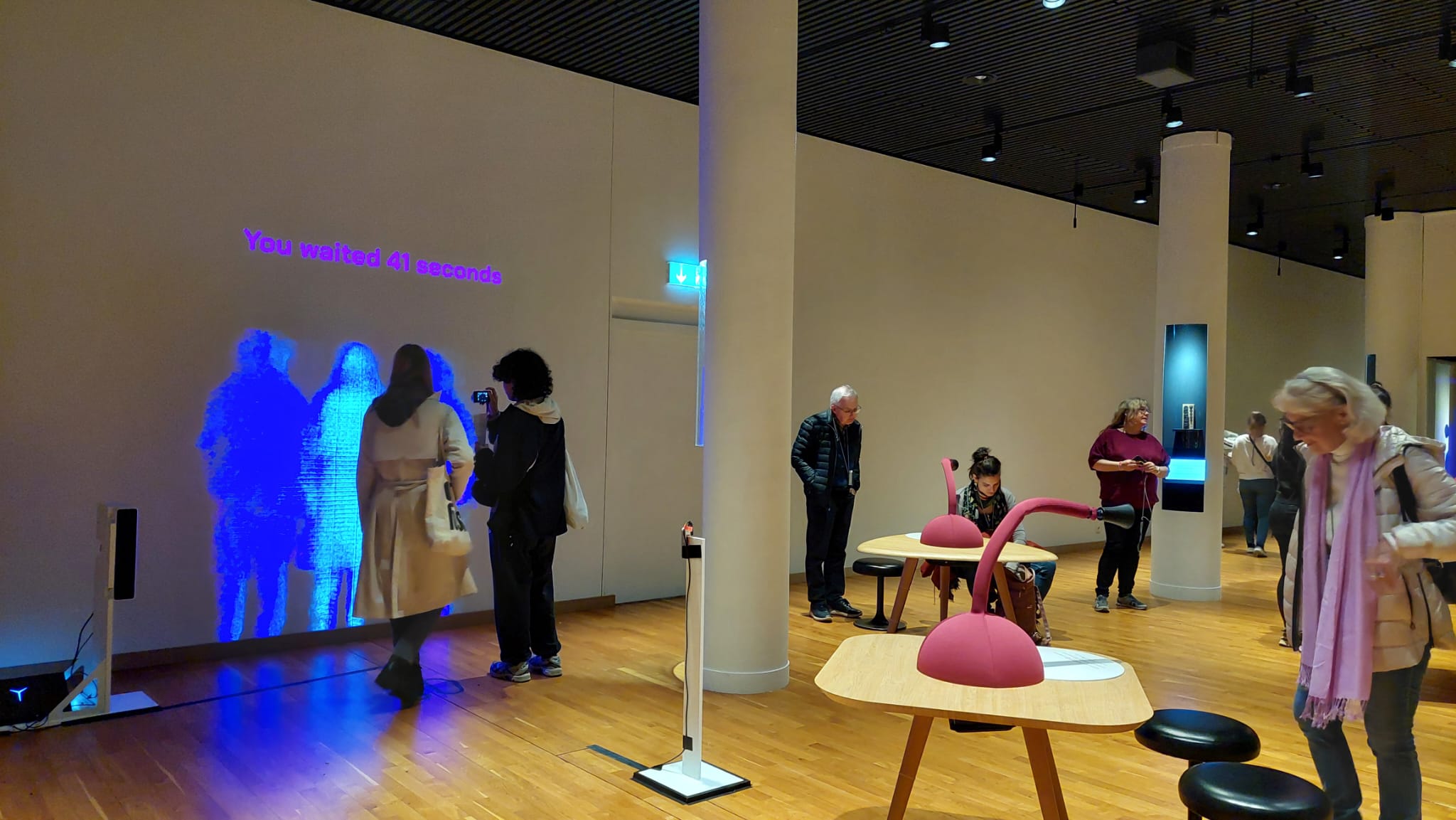 In our busy lives, our smartphones are always ready to fill any gaps. Taking moments to do nothing has become rare, as everything moves quickly and seems available with just a few taps. The "Wait a Second" installation asks whether, in our constant search for distraction and productivity, we might sometimes lose ourselves. In "Wait a Second," not doing anything becomes an experience.The "phygital" installation, created for the "Nothing" exhibition at the Museum of Communication in Bern, encourages visitors to deliberately take a moment to do nothing. During this time, their silhouette appears on a wall as if from nowhere. The longer someone stays in this moment of doing nothing, the longer the silhouette remains visible on the wall before fading away again. This gives a whole new perspective to the idea of not doing anything.